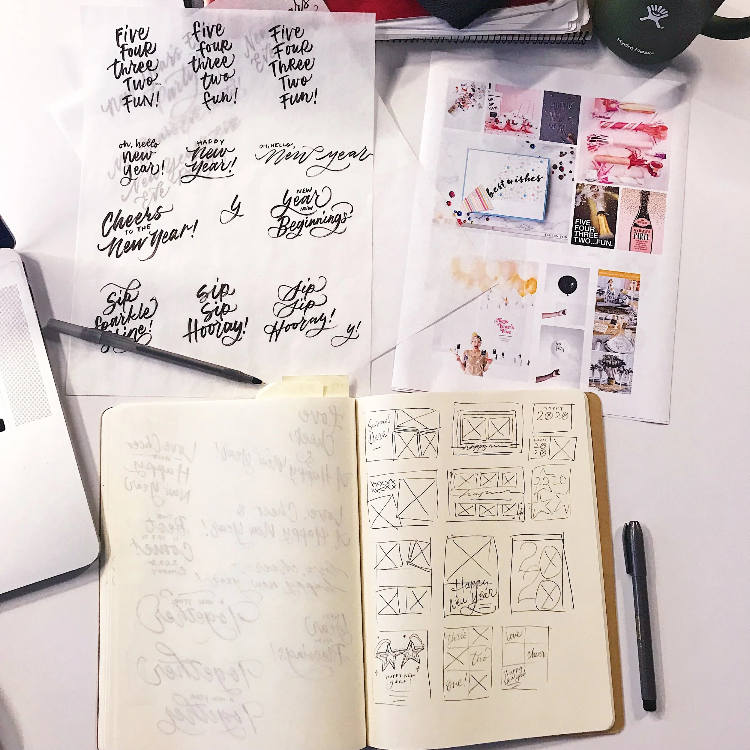 Work Process: Creating mood boards, lettering, and sketches for New Year’s Cards